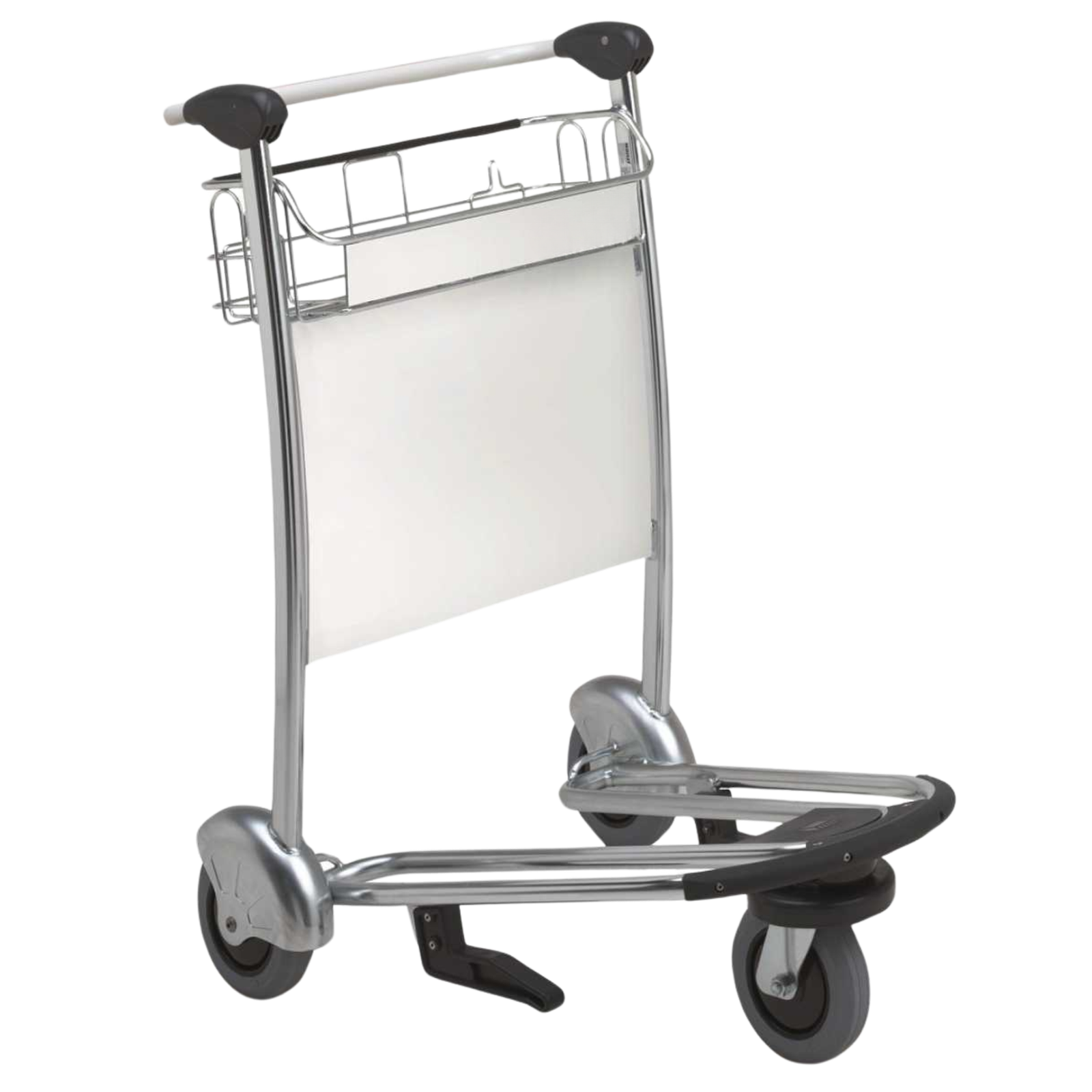 • The luggage cart is equipped with a basket handle that helps direct the cart and increases maneuverability