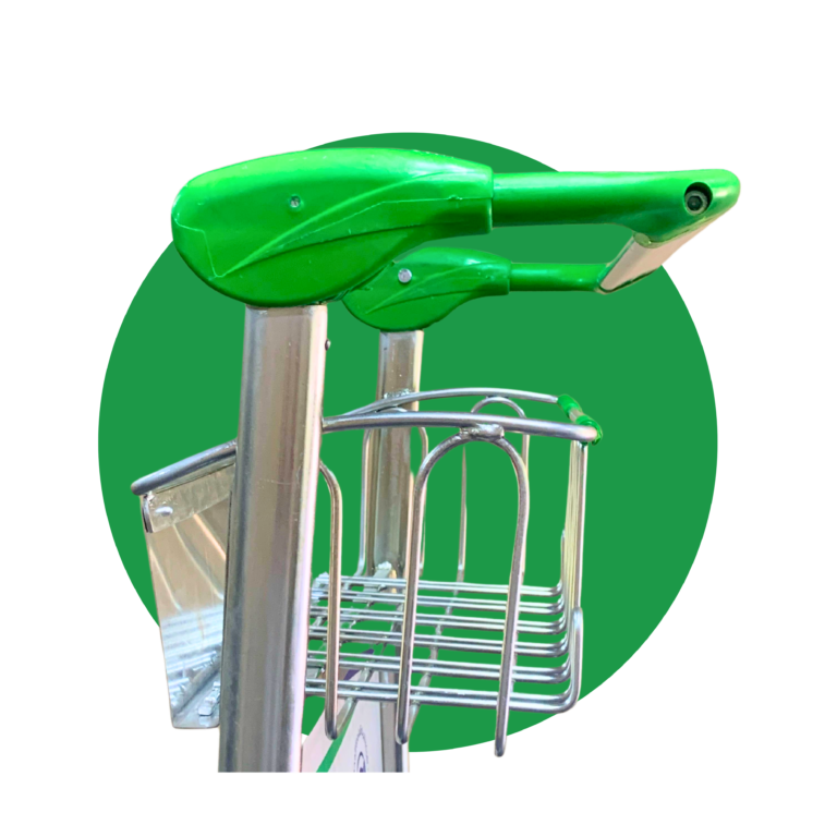 Integrated Coupling Mechanism: A compact component measuring 60 x 40 x 8 mm with a 25 mm diameter opening, securely welded to the front chassis. This design ensures seamless and reliable attachment of a scooter tow adapter. Ergonomic Hygienic Handle: An oval-shaped handle coated with a transparent, antibacterial finish for enhanced cleanliness and user safety, while maintaining an attractive promotional appearance.